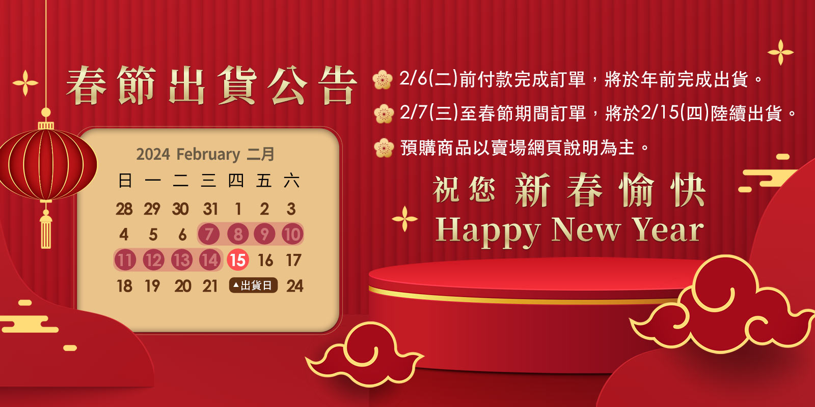 2024春節出貨公告